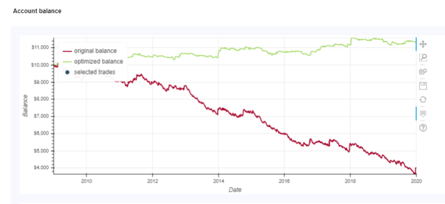 The data is processed using our machine learning algorithm to identify any ways the ROI can be increased, and the drawdowns decreased. The forex trading machine learning algorithm can identify numerous ways in which a strategy can be optimized.