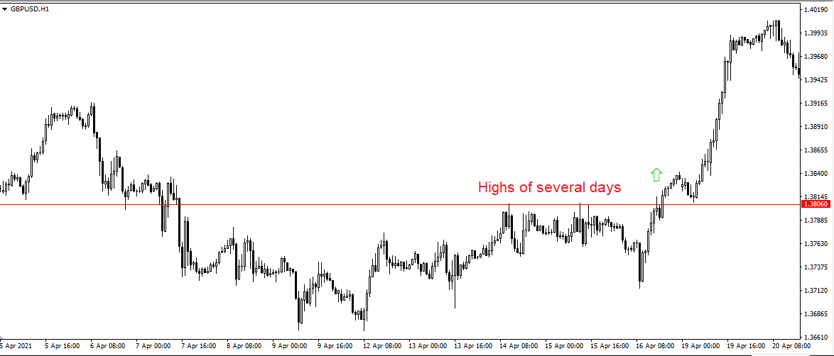 In the screenshot, the price has been testing resistance for several days, and after its breakout, growth begins. At this point, the hedging EA can open a long position. Further development of the situation shows that the trade would have been held until the close with the take profit, since the market movement was strong enough. If the price went in the opposite direction below the high after the open, the hedging position would help minimise losses and translate them into profits over time.